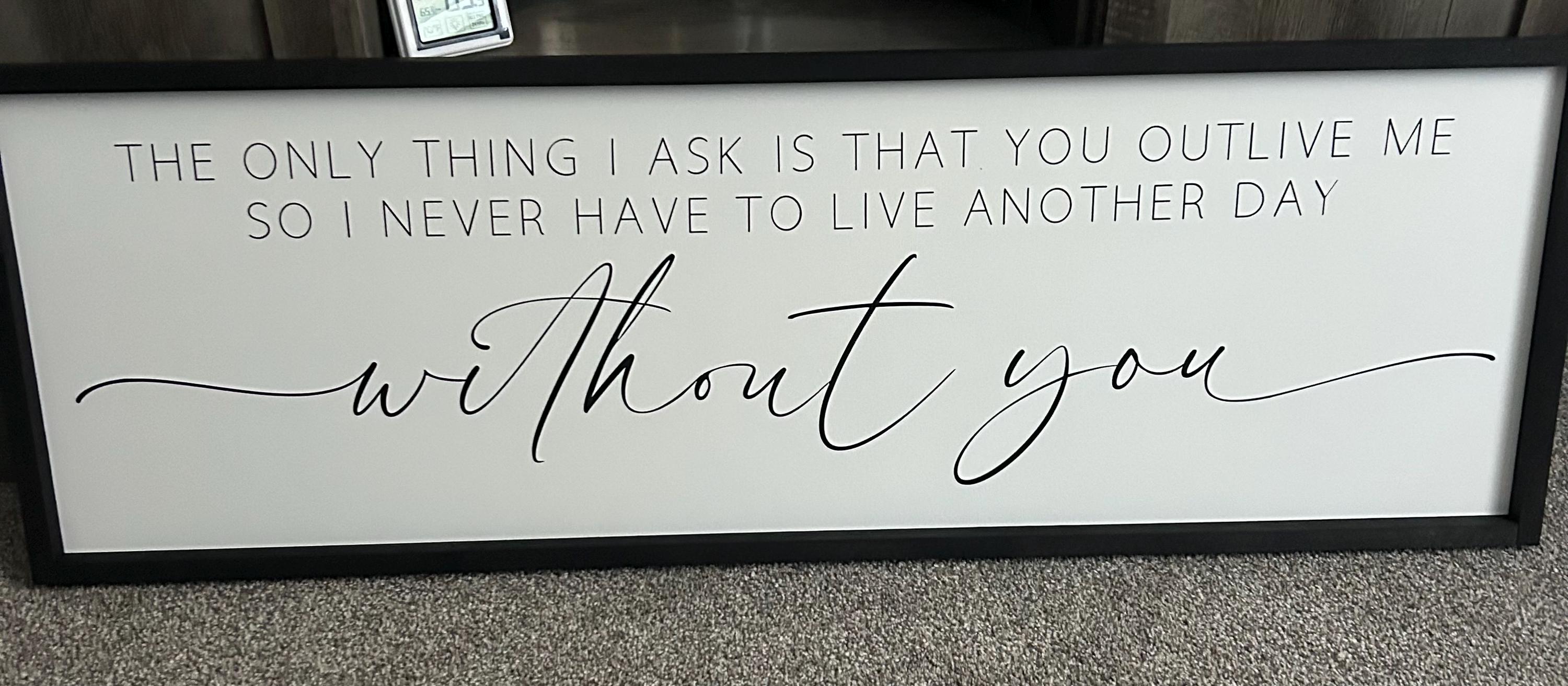 "The Only Thing I Ask Is That You Outlive Me Sign" Framed Wood Sign
