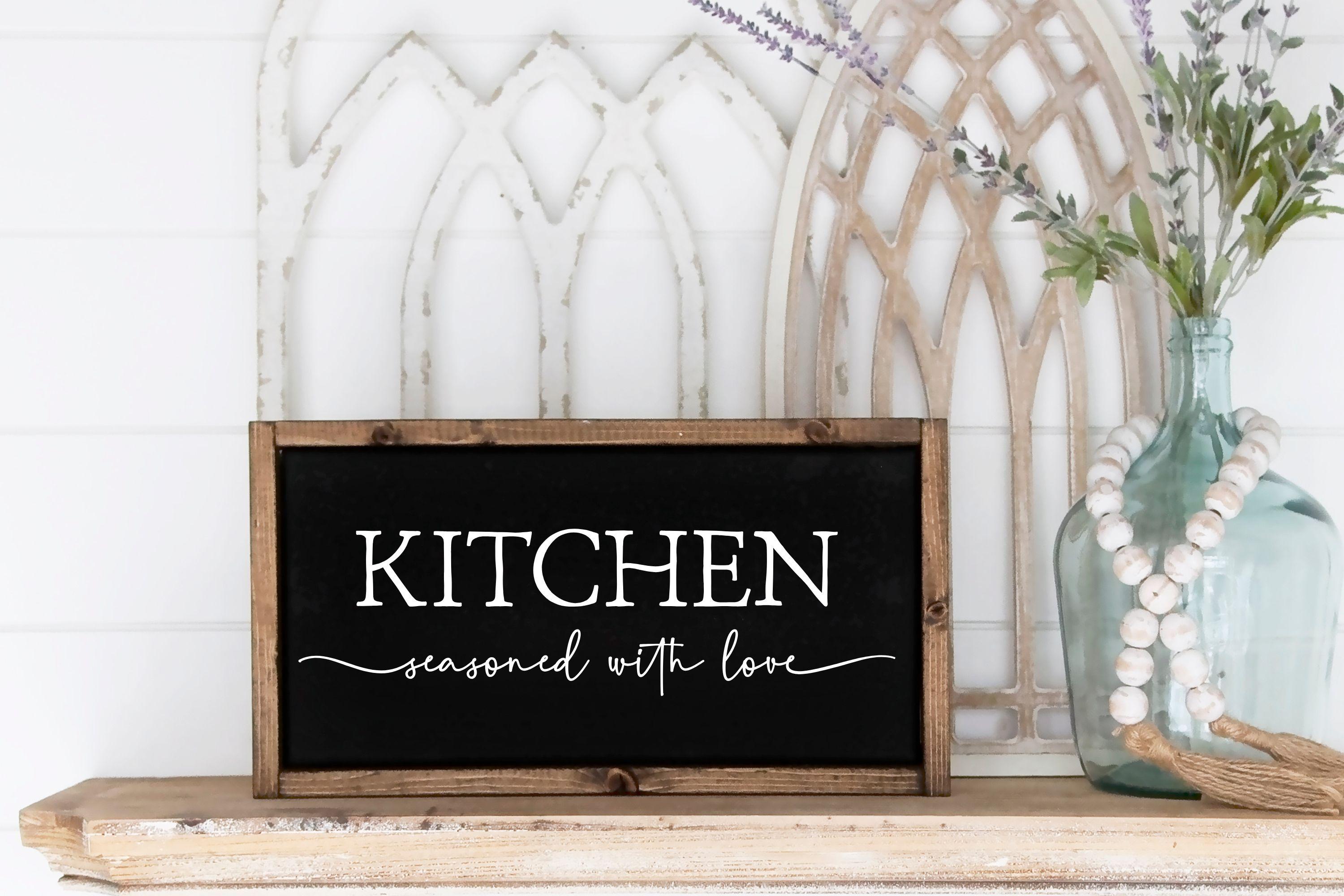 "Kitchen Seasoned With Love" Framed Wood Sign