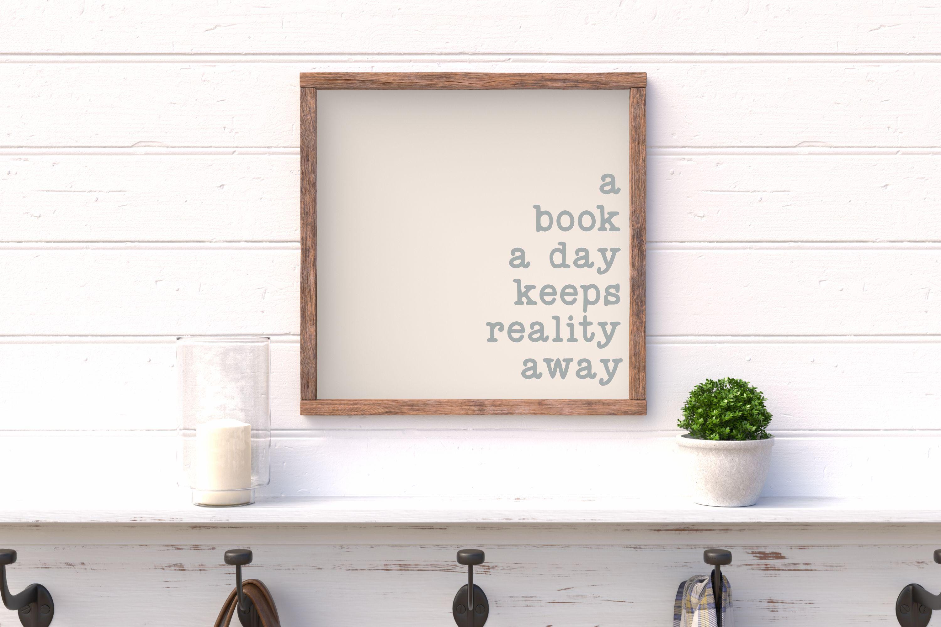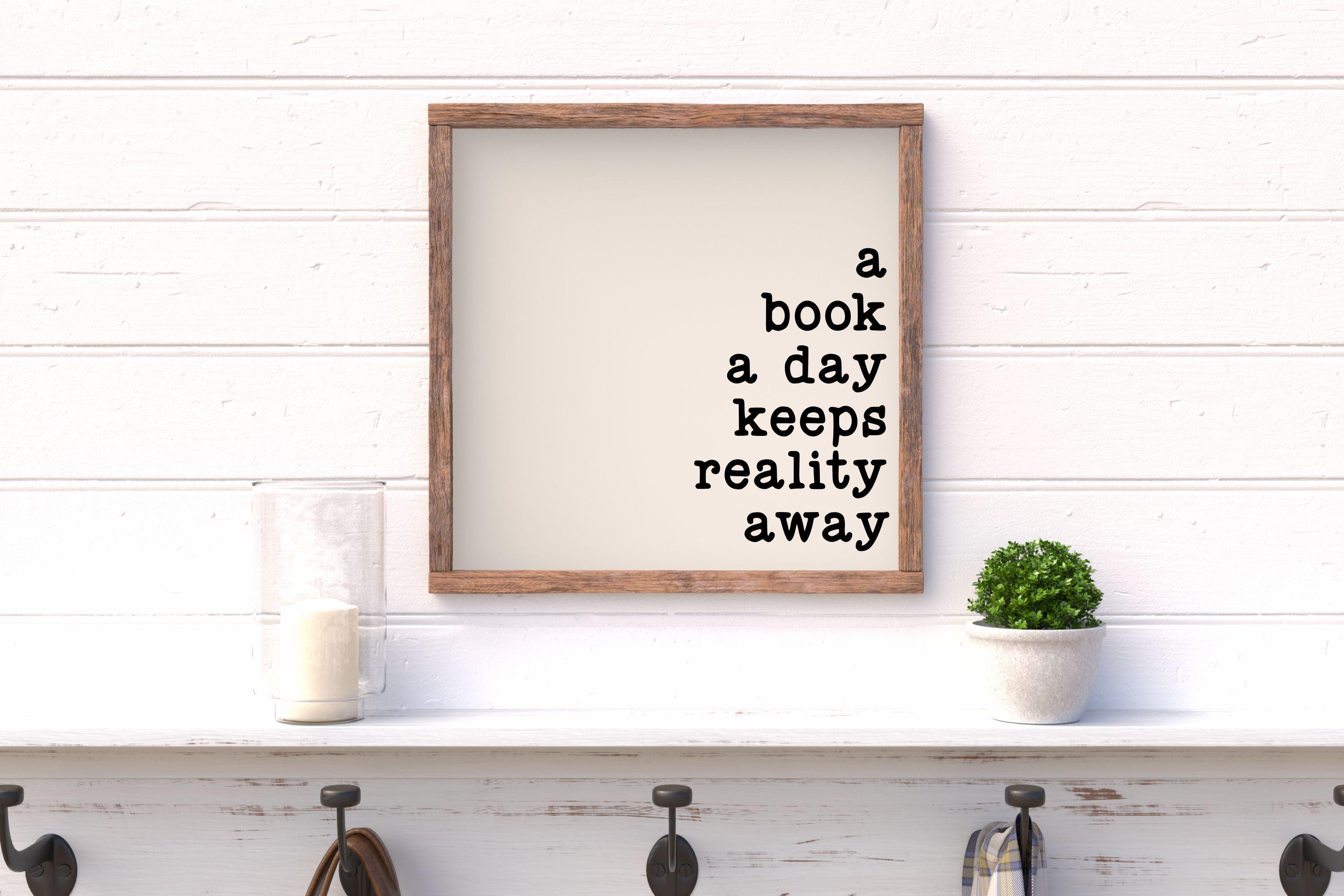"A Book A Day Keeps Reality Away" Framed Wood Sign