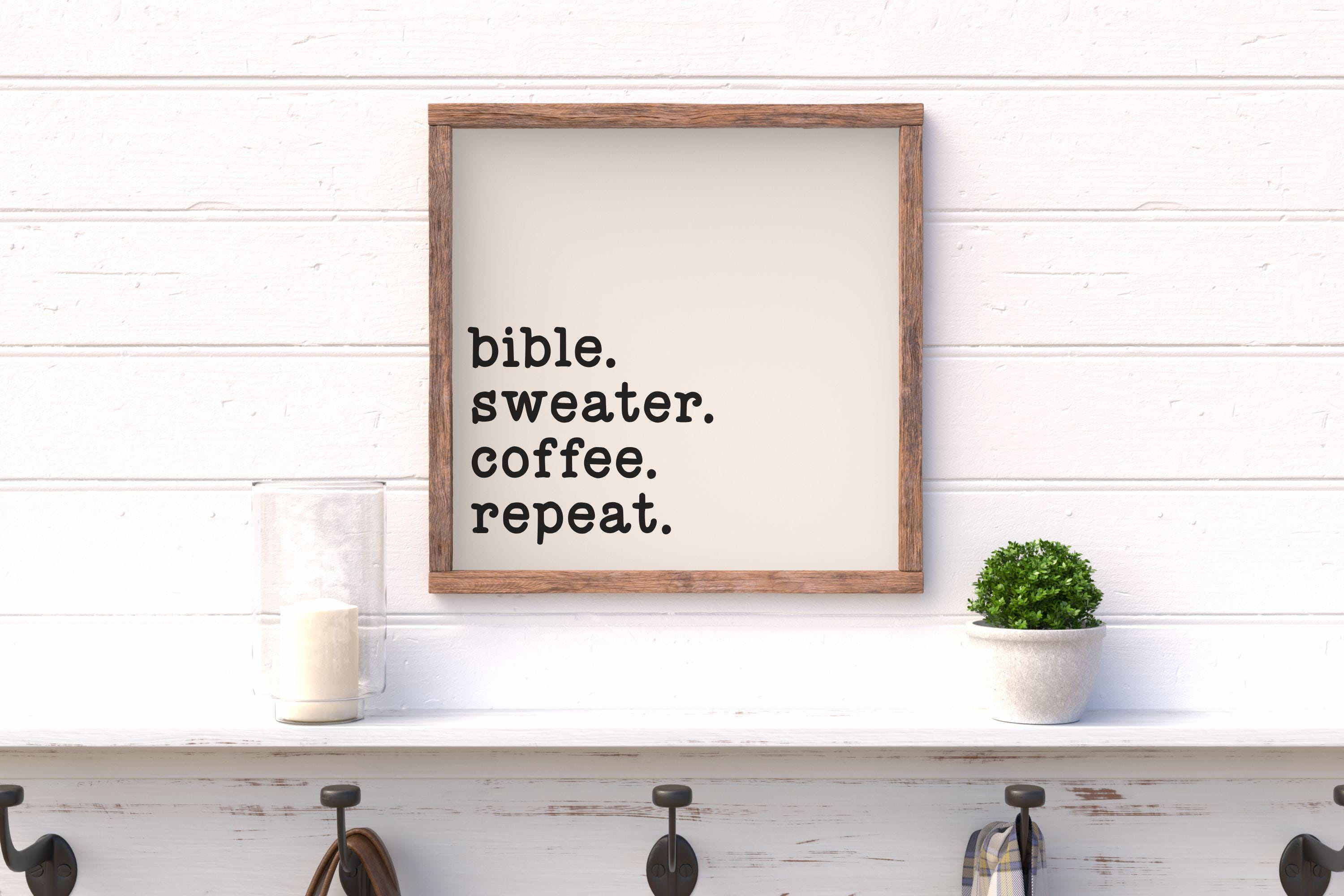 "Bible. Sweater. Coffee. Repeat" Framed Wood Sign