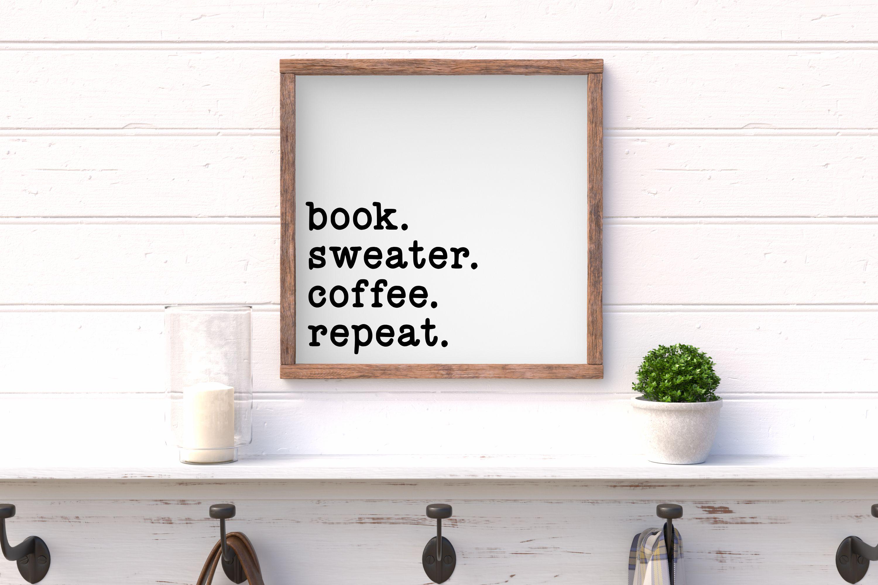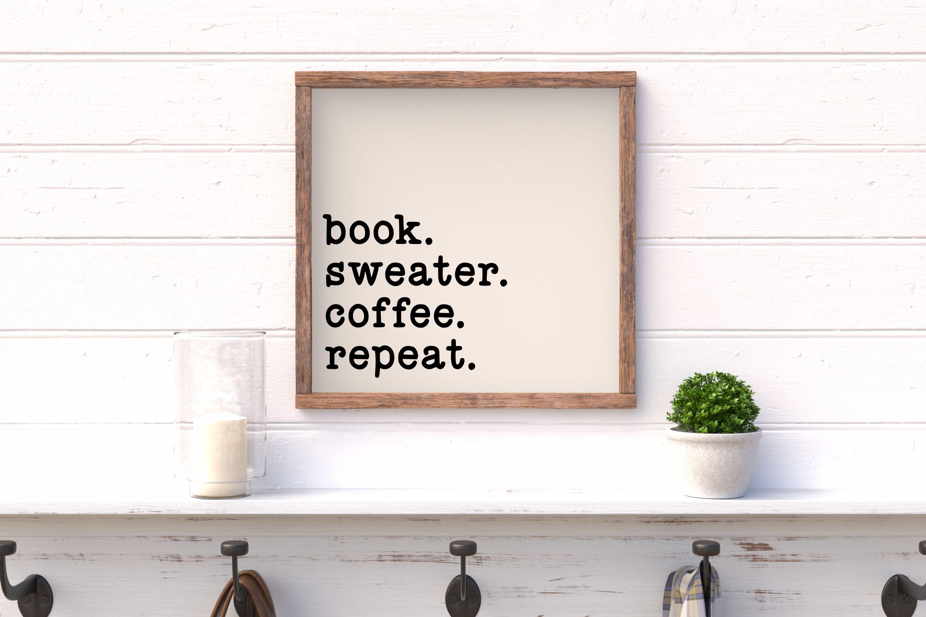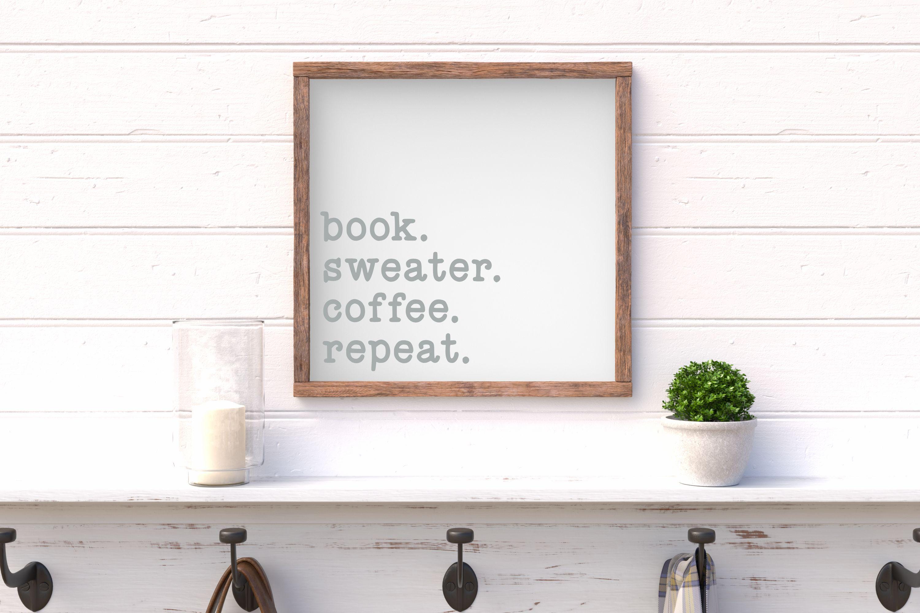 "Book. Sweater. Coffee. Repeat" Framed Wood Sign