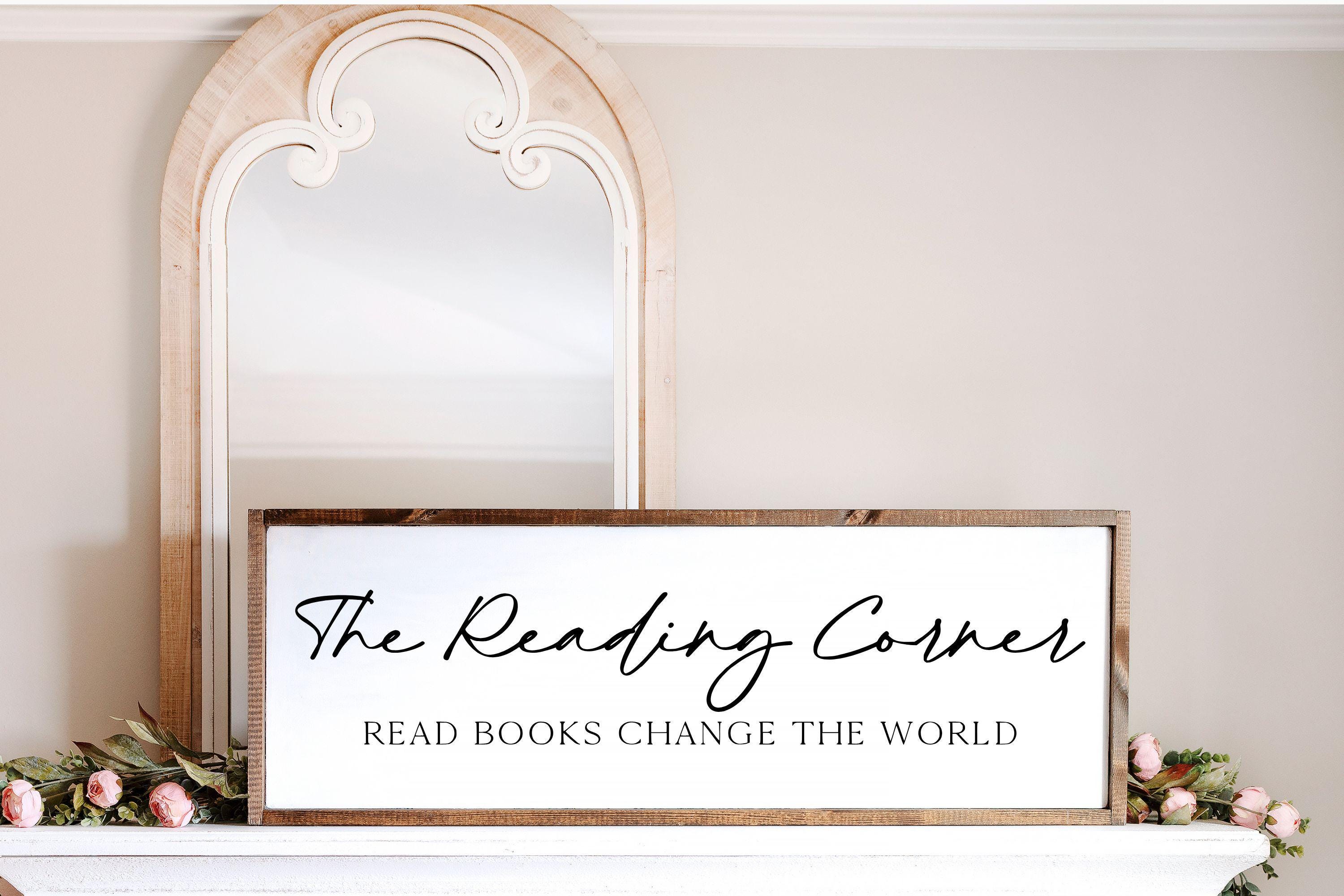 "The Reading Corner Read Books Change The World" Framed Wood Sign