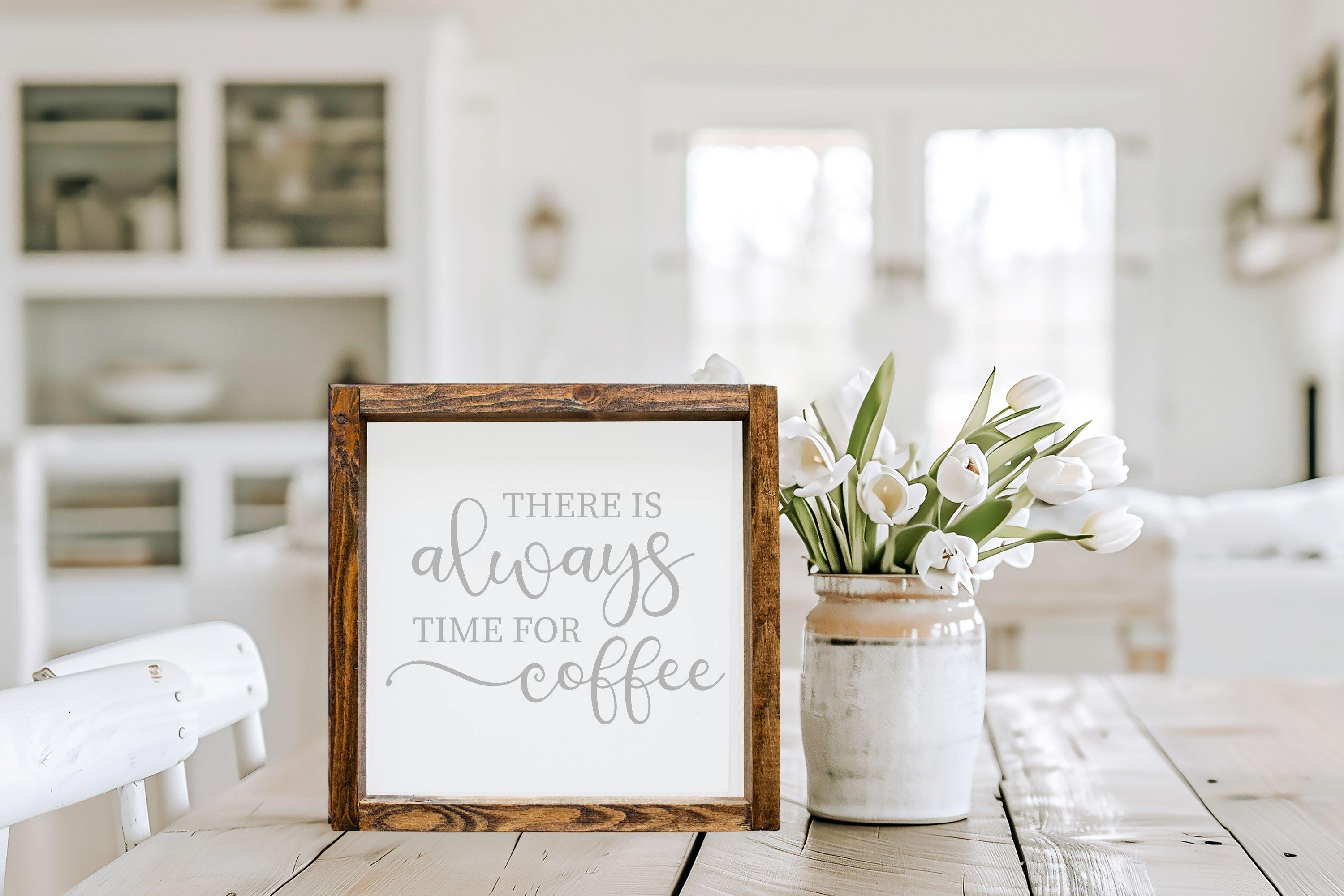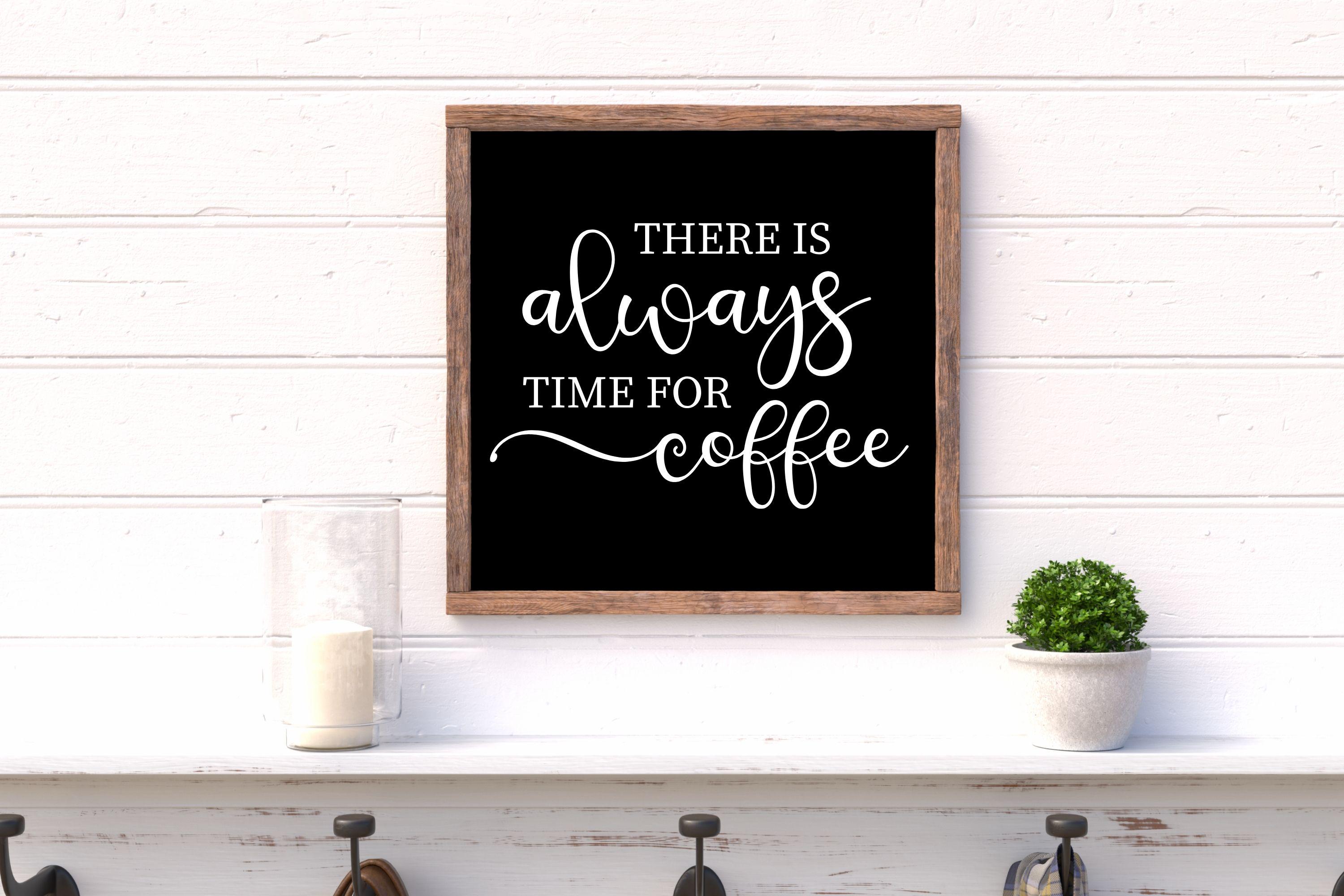 "There Is Always Time For Coffee" Framed Wood Sign