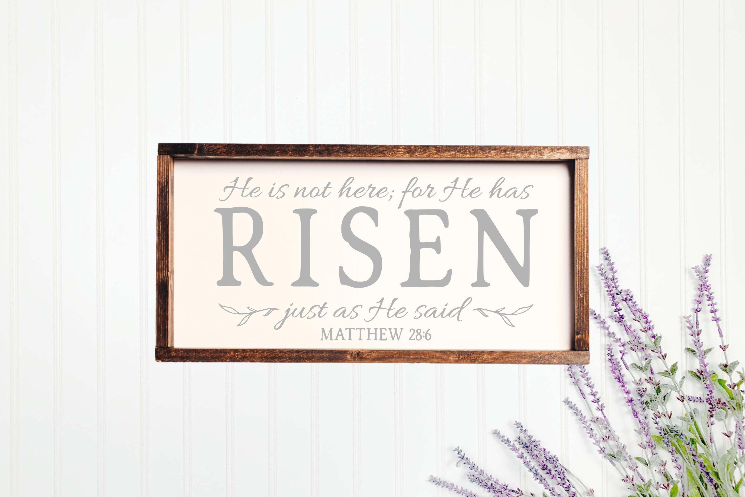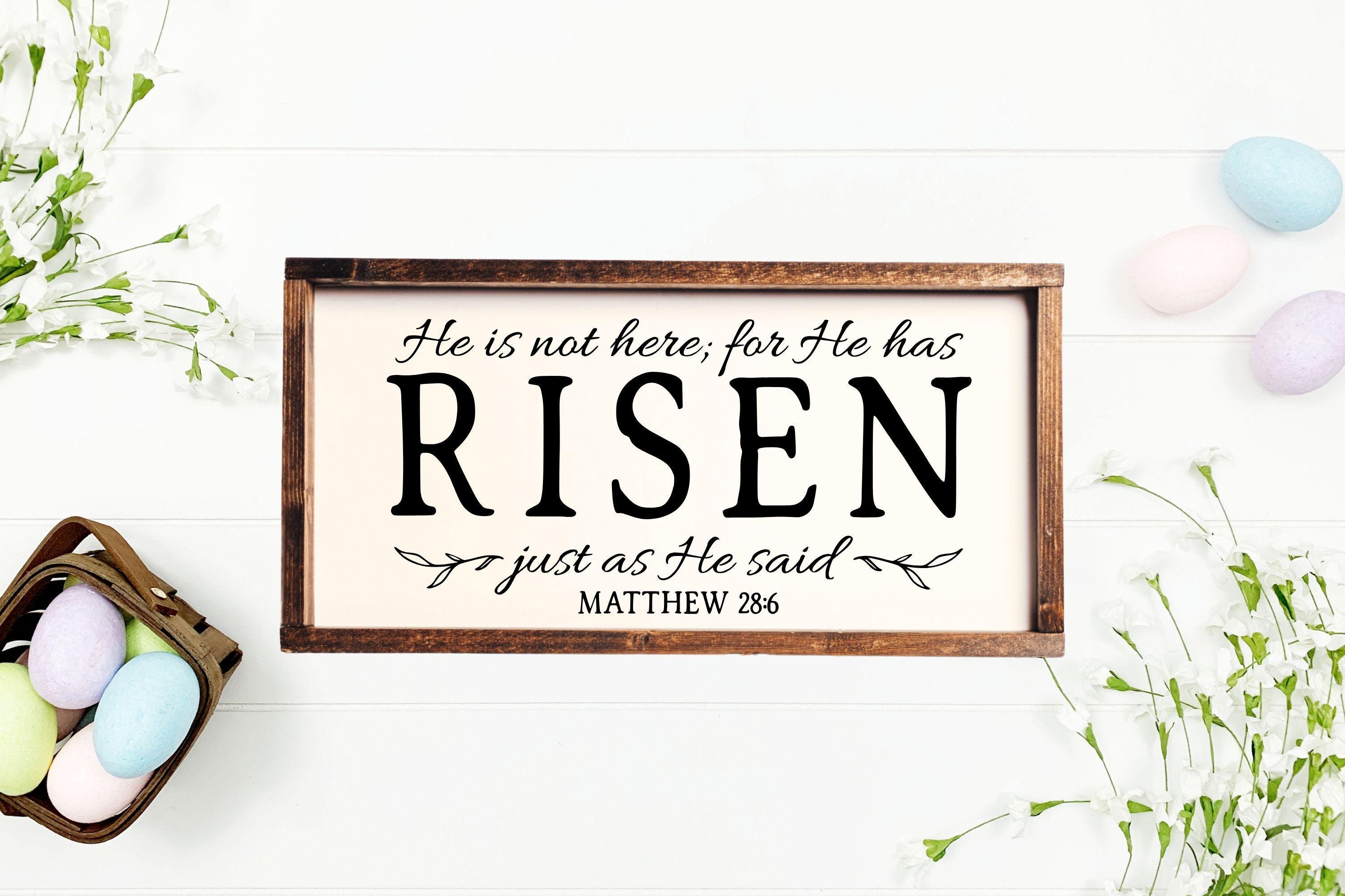 "He Is Not Here For He Has Risen Just As He Said" Framed Wood Sign