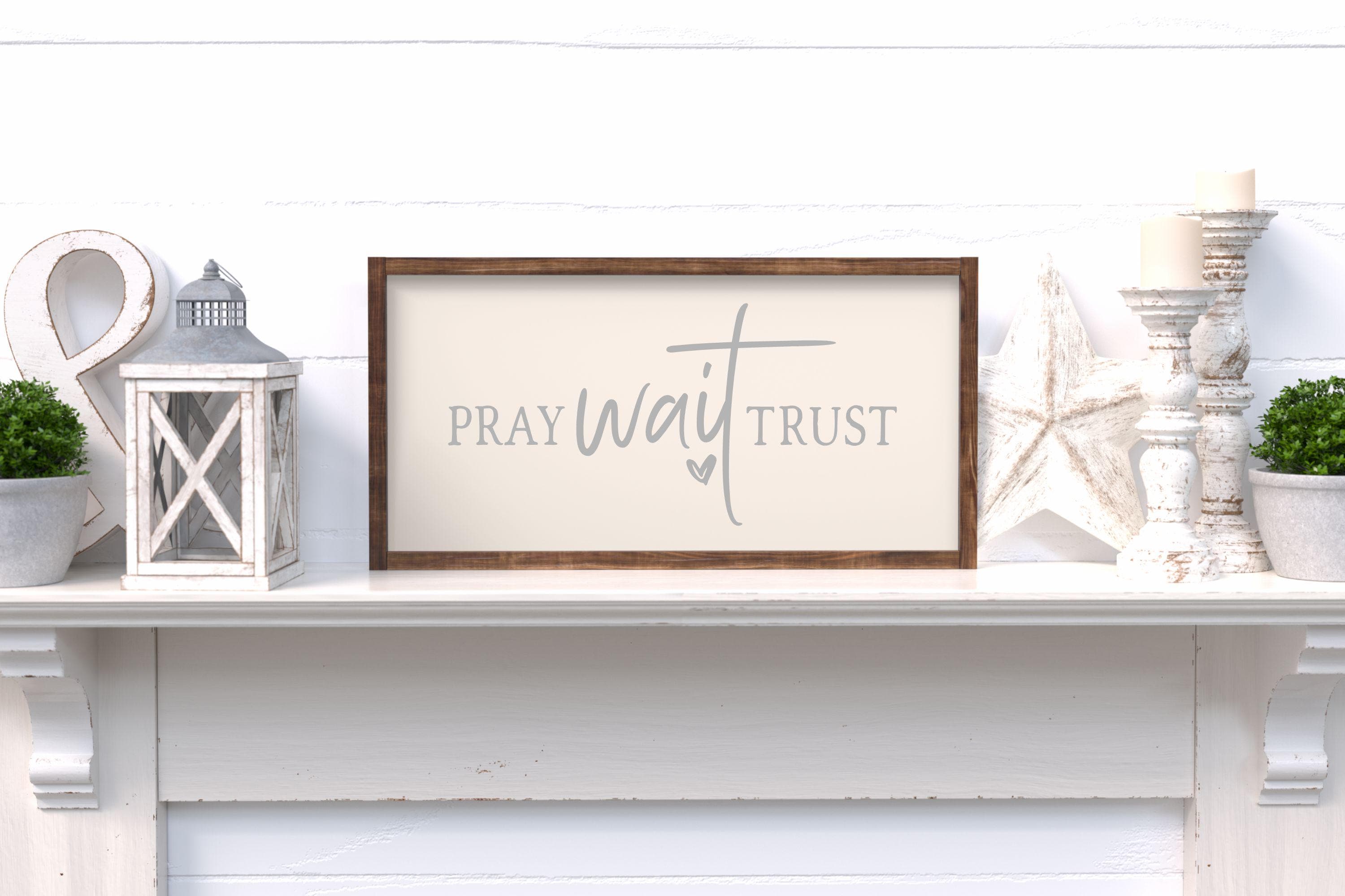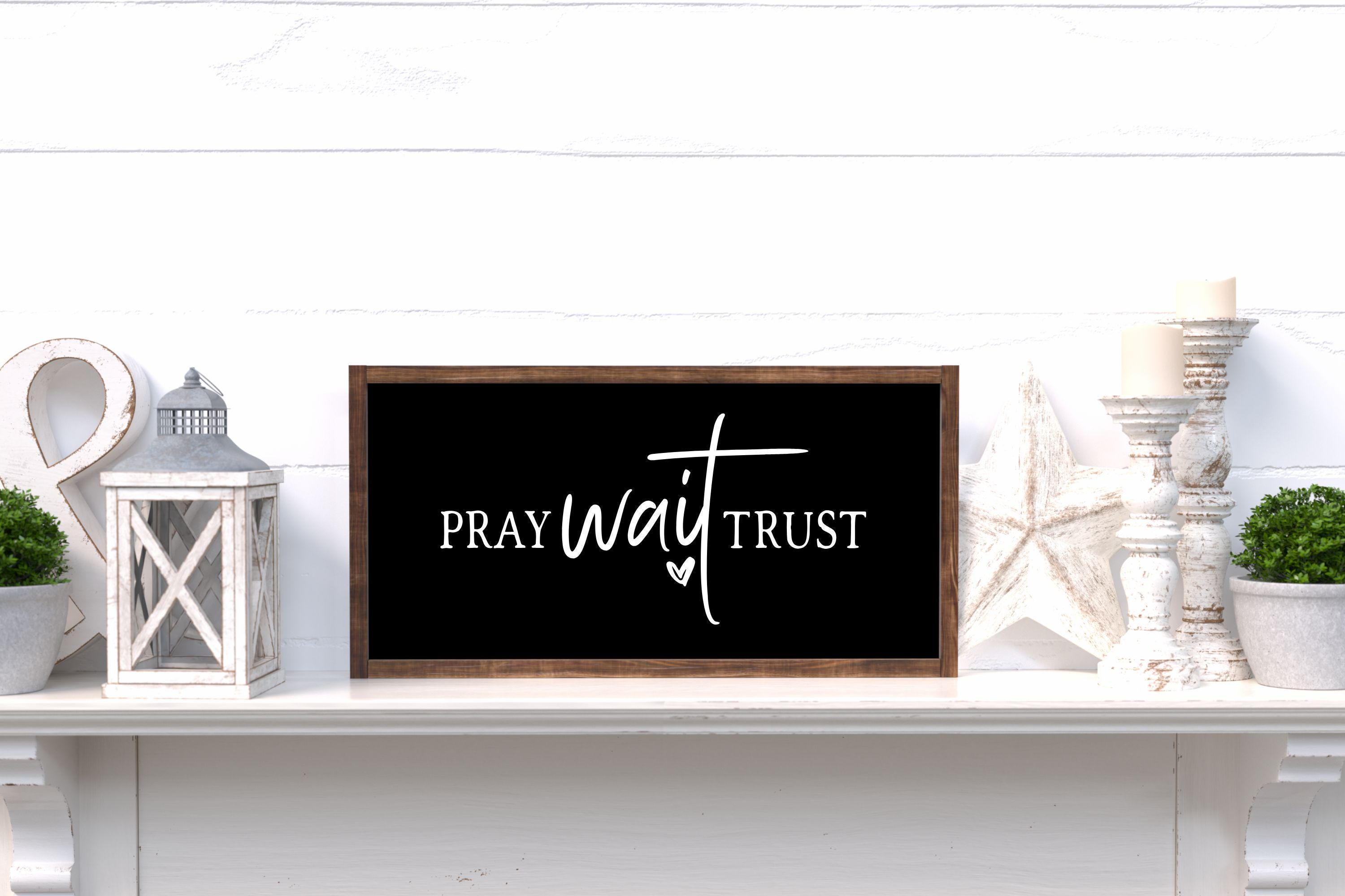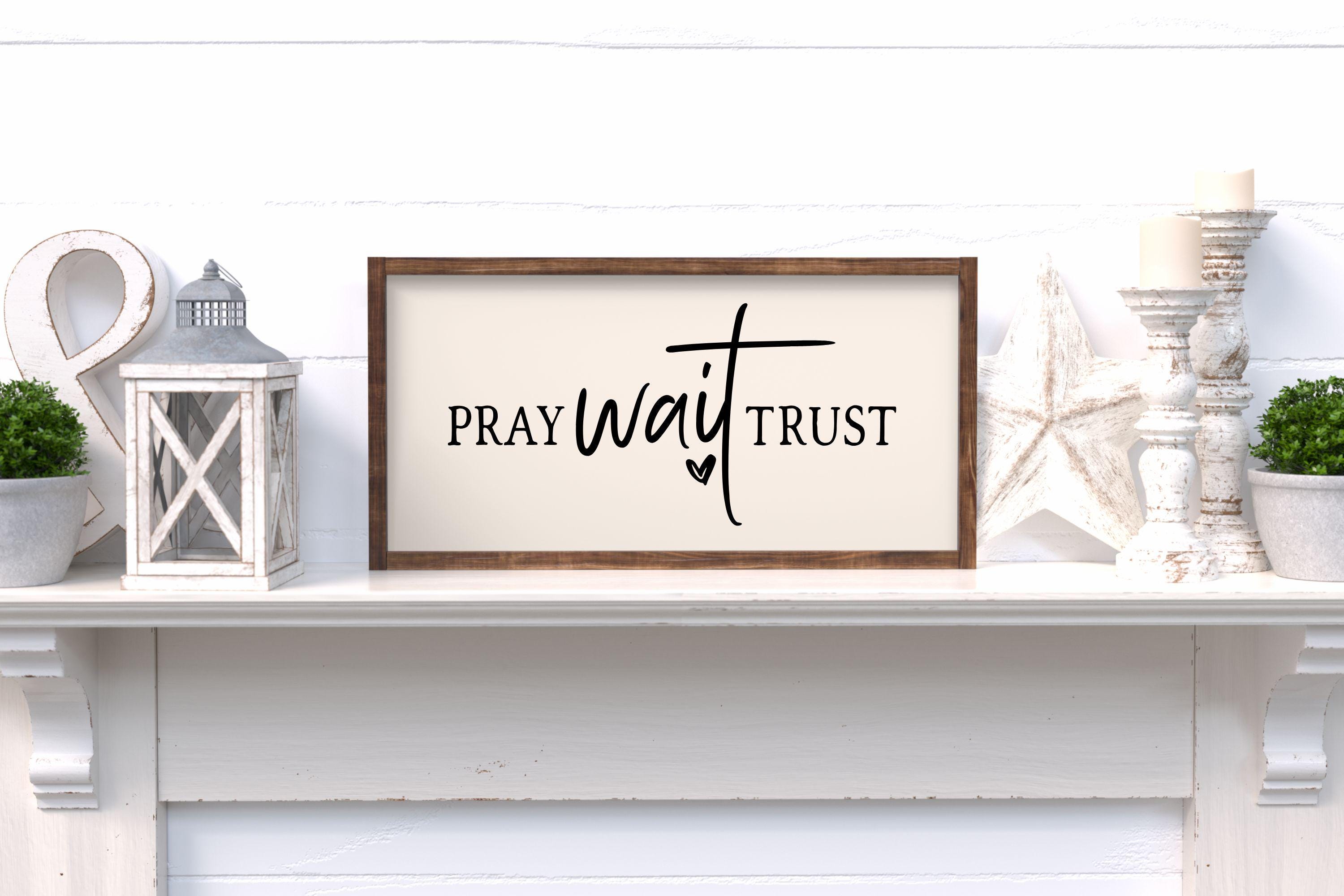 "Pray Wait Trust" Framed Wood Sign