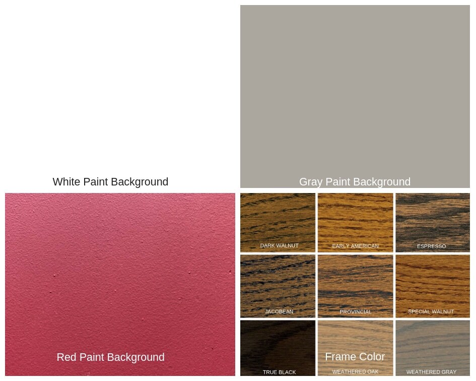 Please see listing photo for available stain color options. Please specify frame color choice in the personalization box. The listing photographs show a provincial stained frame in 24"W x 12" H size for your reference.